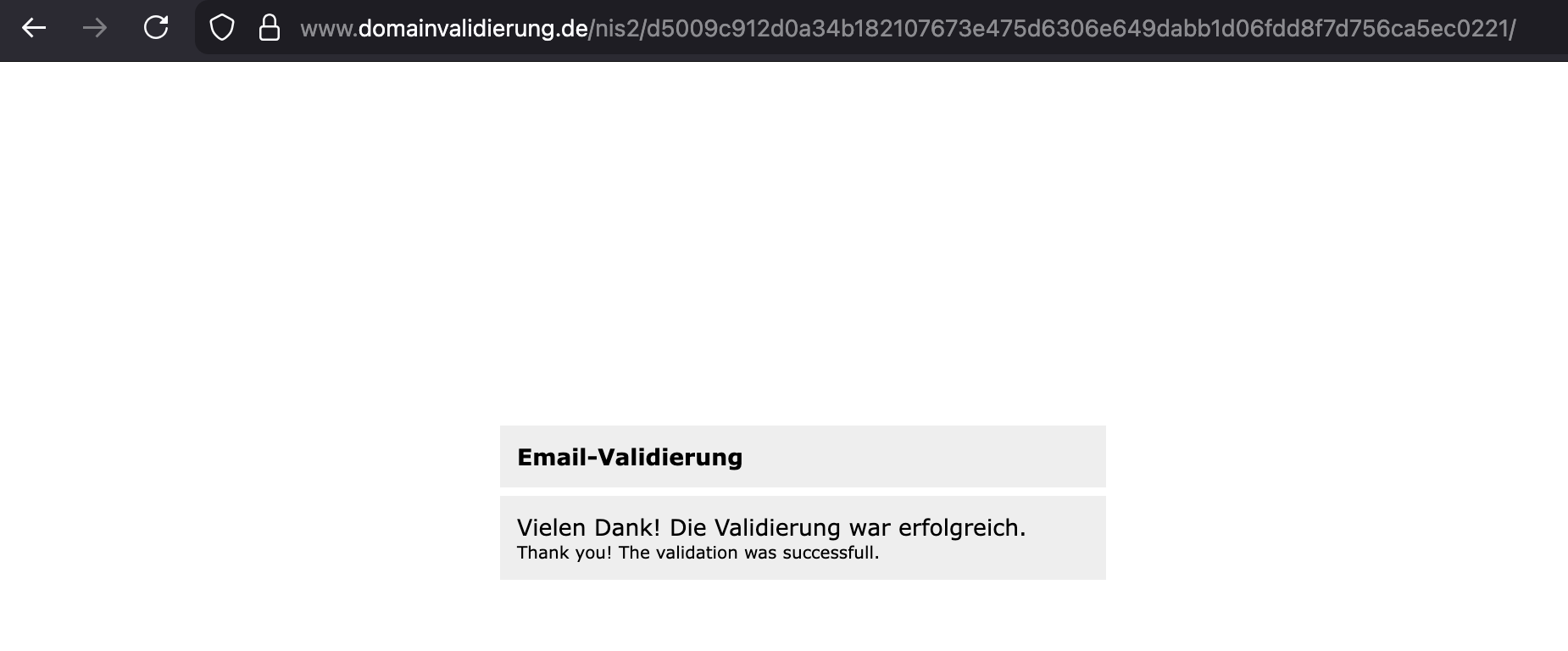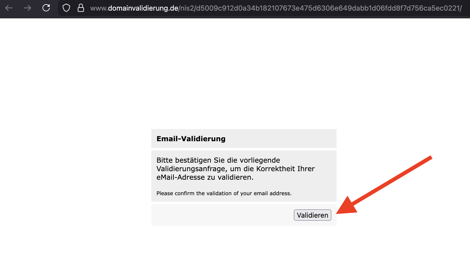 Wir möchten Sie daher bitten, mit Aufruf des folgenden Links die Korrektheit Ihrer Kontakt-E-Mail-Adresse zu bestätigen: https://www.domainvalidierung.de/xxxxxxxxxxxxxxxxxxxxxxxxxxxxxx/ -