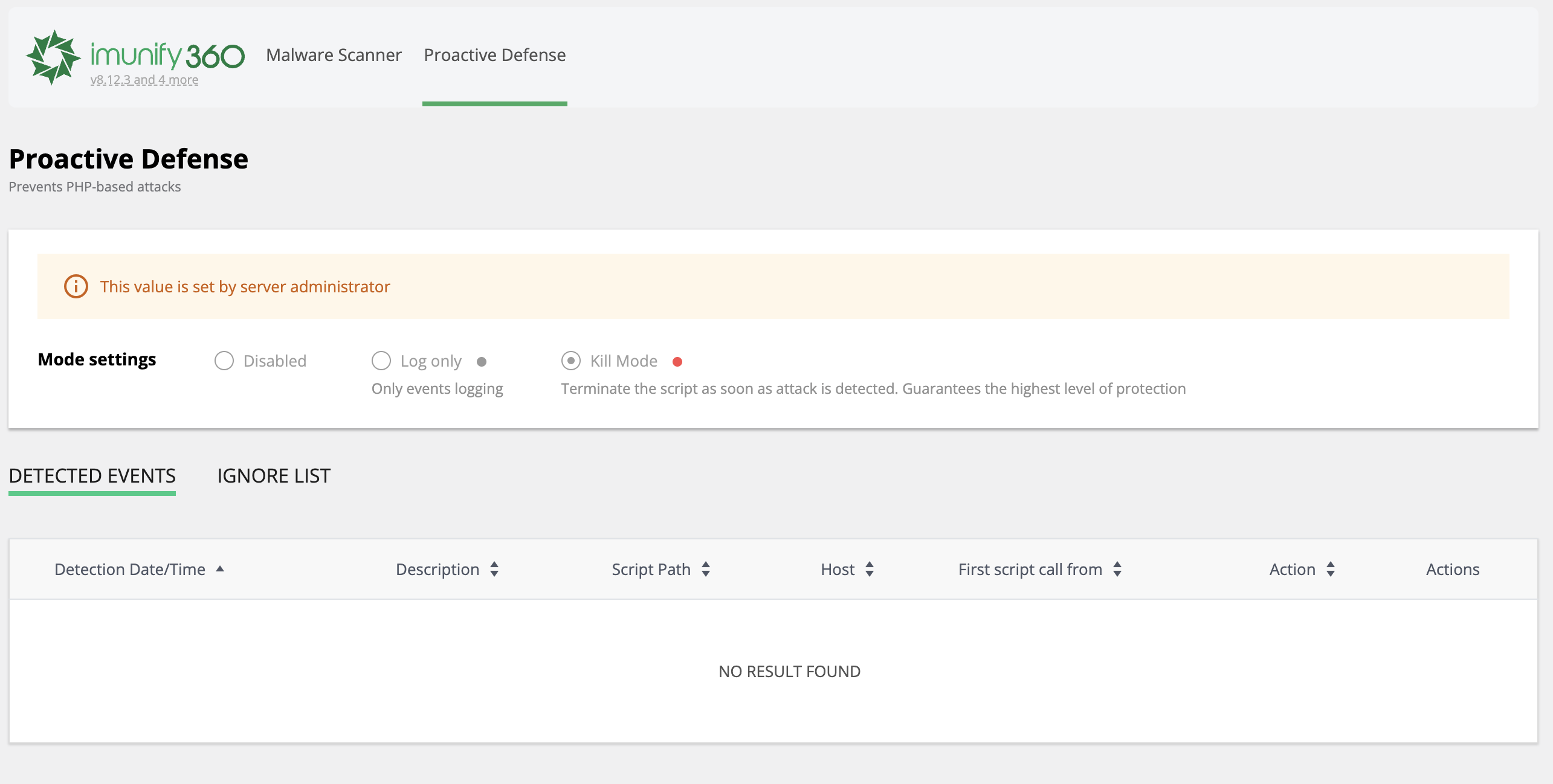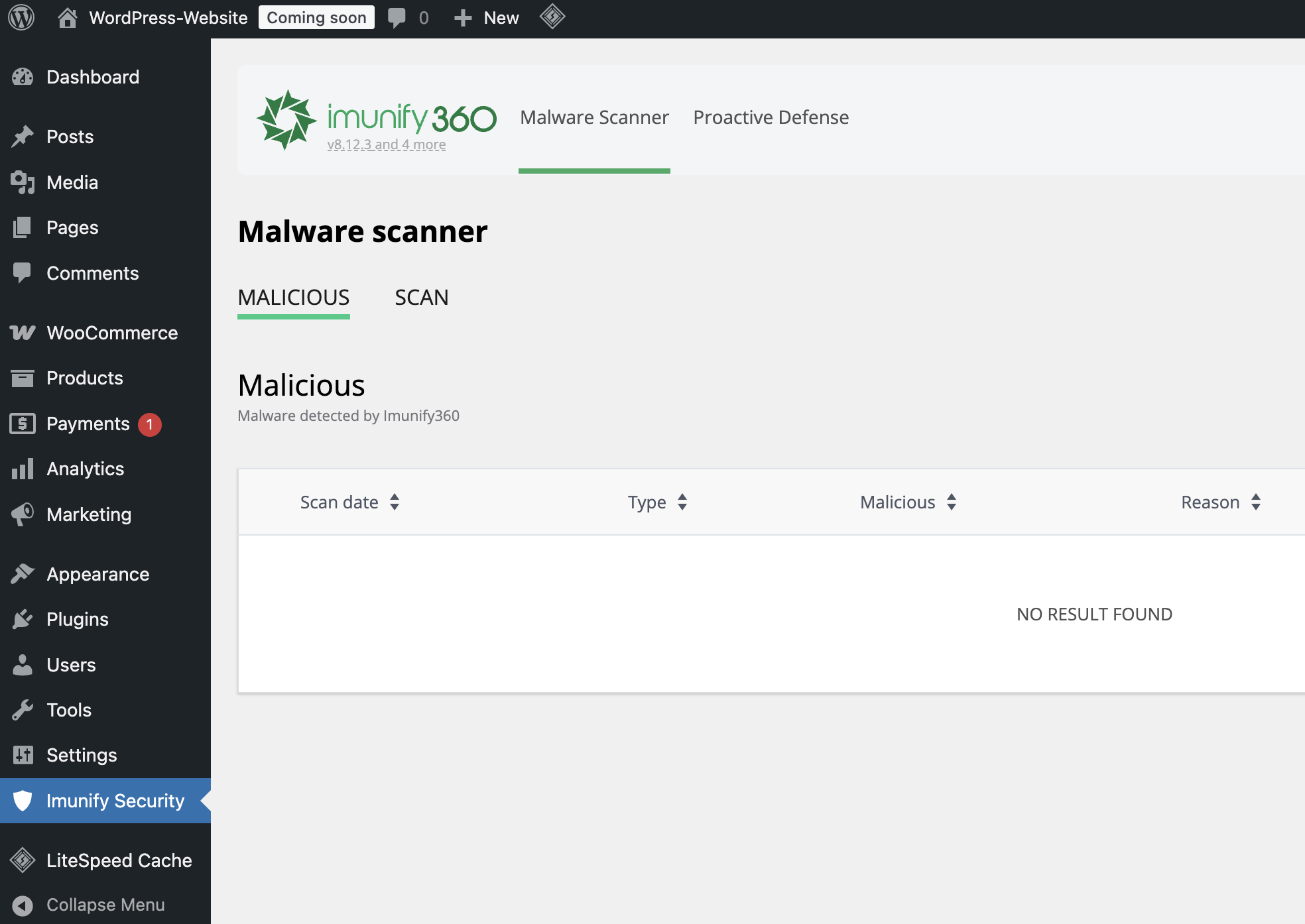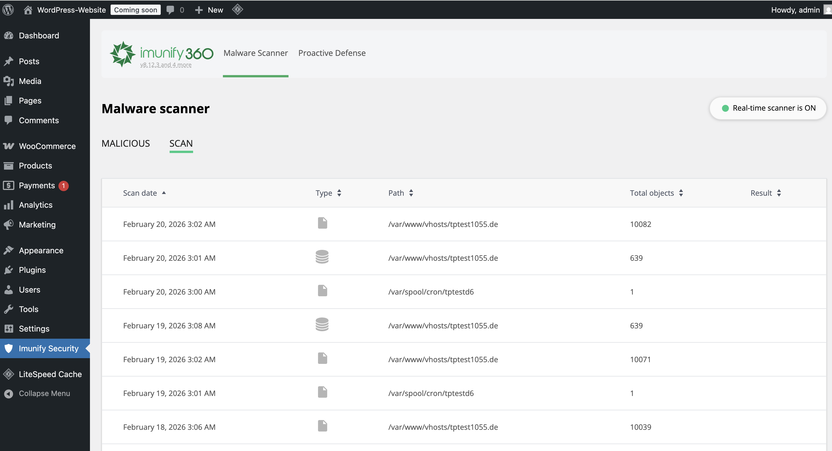 Auf allen WordPress Instanzen wird das "Imunify Security WordPress Plugin" automatisch installiert (es kann bis zu 24h dauern nach Setup eines WordPress, bis das Plugin erscheint!). Dieses Plugin ermöglicht es dir, Informationen rund um Immunify360 abzurufen.