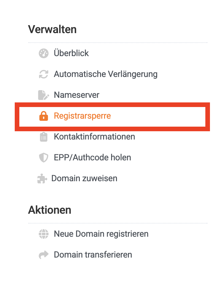 Registrarsperre deaktivieren (nur für Domaintransfer)