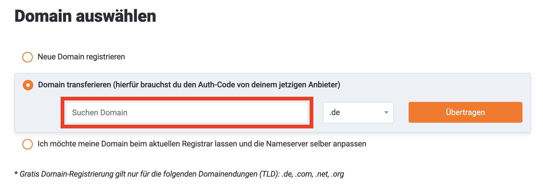 Optional: Hosting-Paket ohne Domain-Transfer kaufen