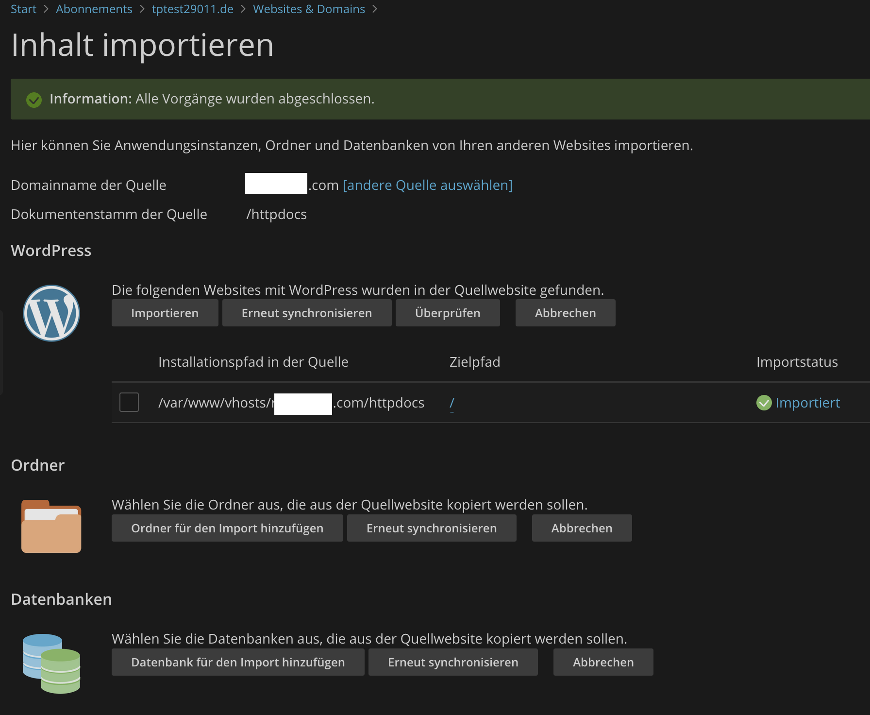 - Du hast eine Ziel-Domain in Plesk (turbopress Hosting), auf die importiert werden soll.
