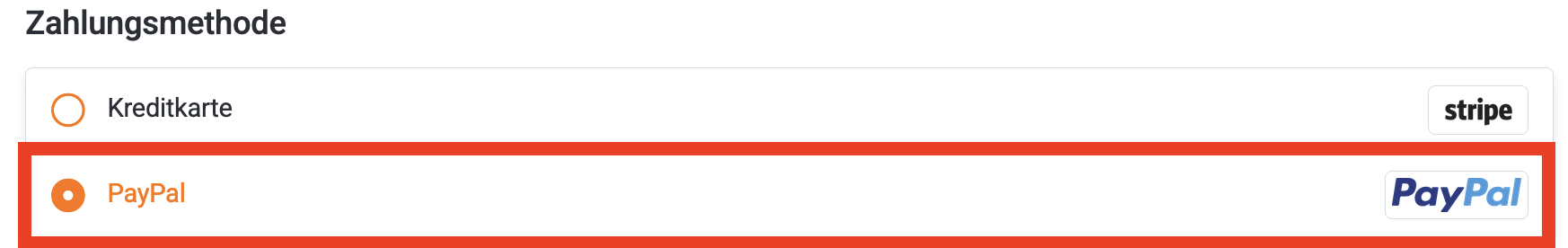 Wähle die gewünschte Zahlungsoption in PayPal aus und bestätige die Zahlung.