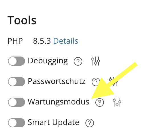 Navigiere in Plesk zu deiner Domain und aktivieren dort schnell und einfach den Wartungsmodus: