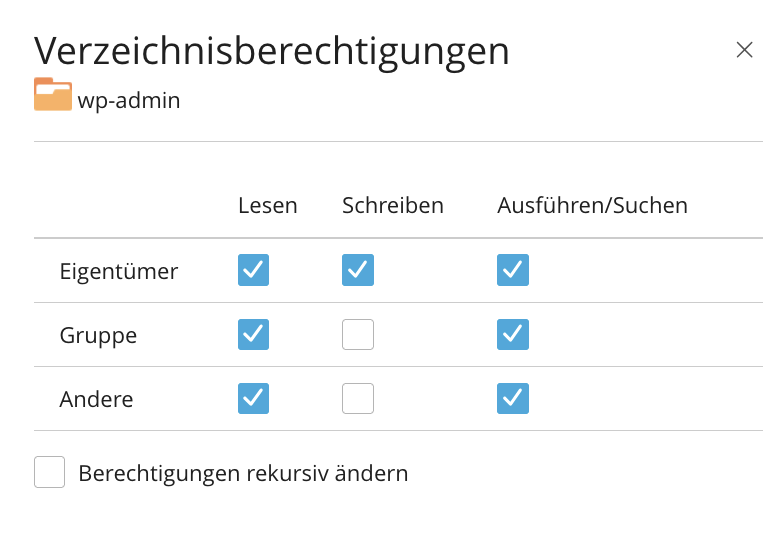 - Setze die gewünschten Häkchen (Lesen, Schreiben, Ausführen)
