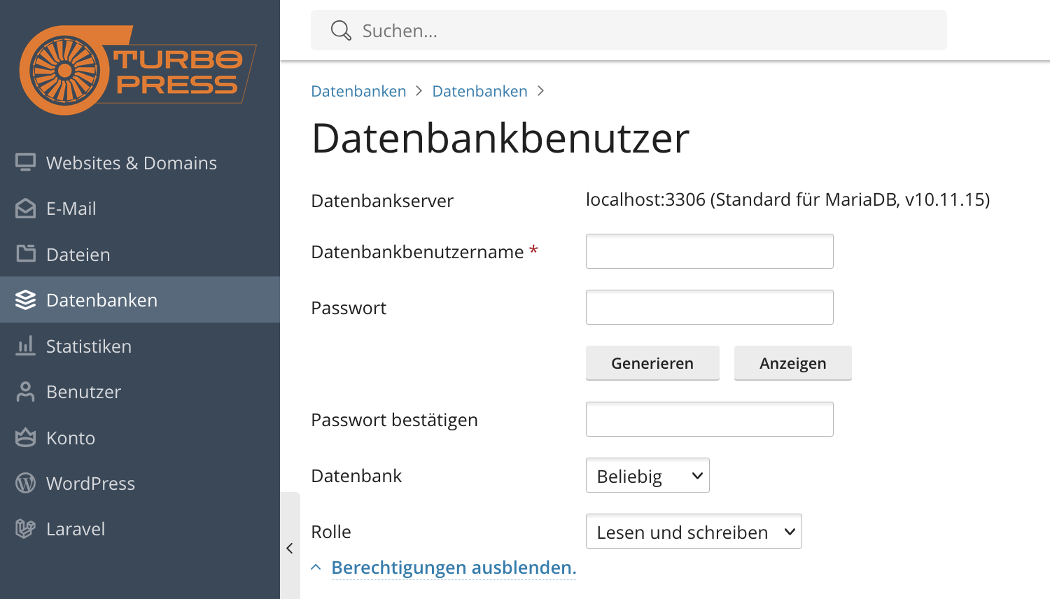 Um das Passwort eines Benutzers für eine Datenbank zu ändern, gehe wie folgt vor: