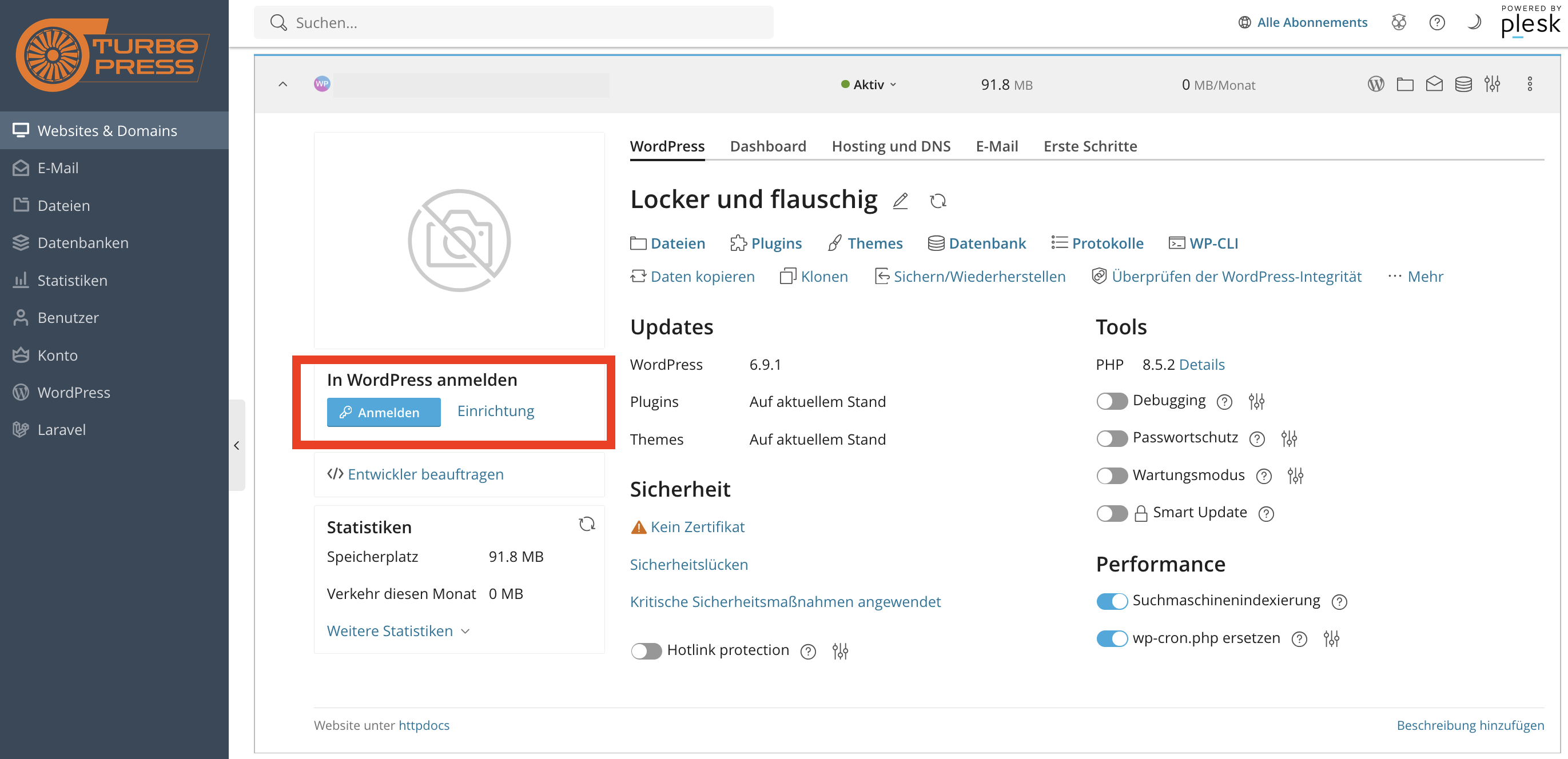 - Navigiere zu turbopress → Meine Hosting-Pakete