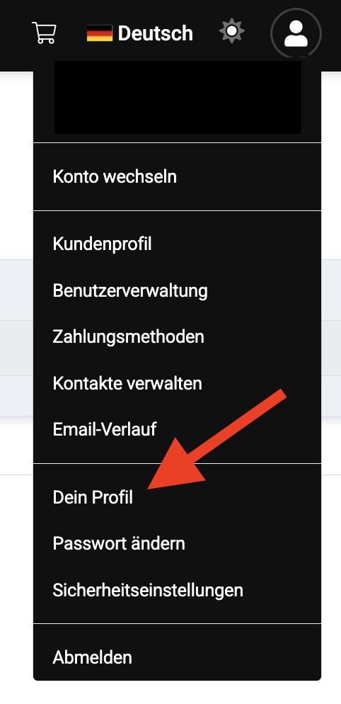 Möchtest du die Zugangsdaten für das turbopress-Panel ändern, melde dich mit deinen Zugangsdaten im Panel und klicke auf Dein Profil.